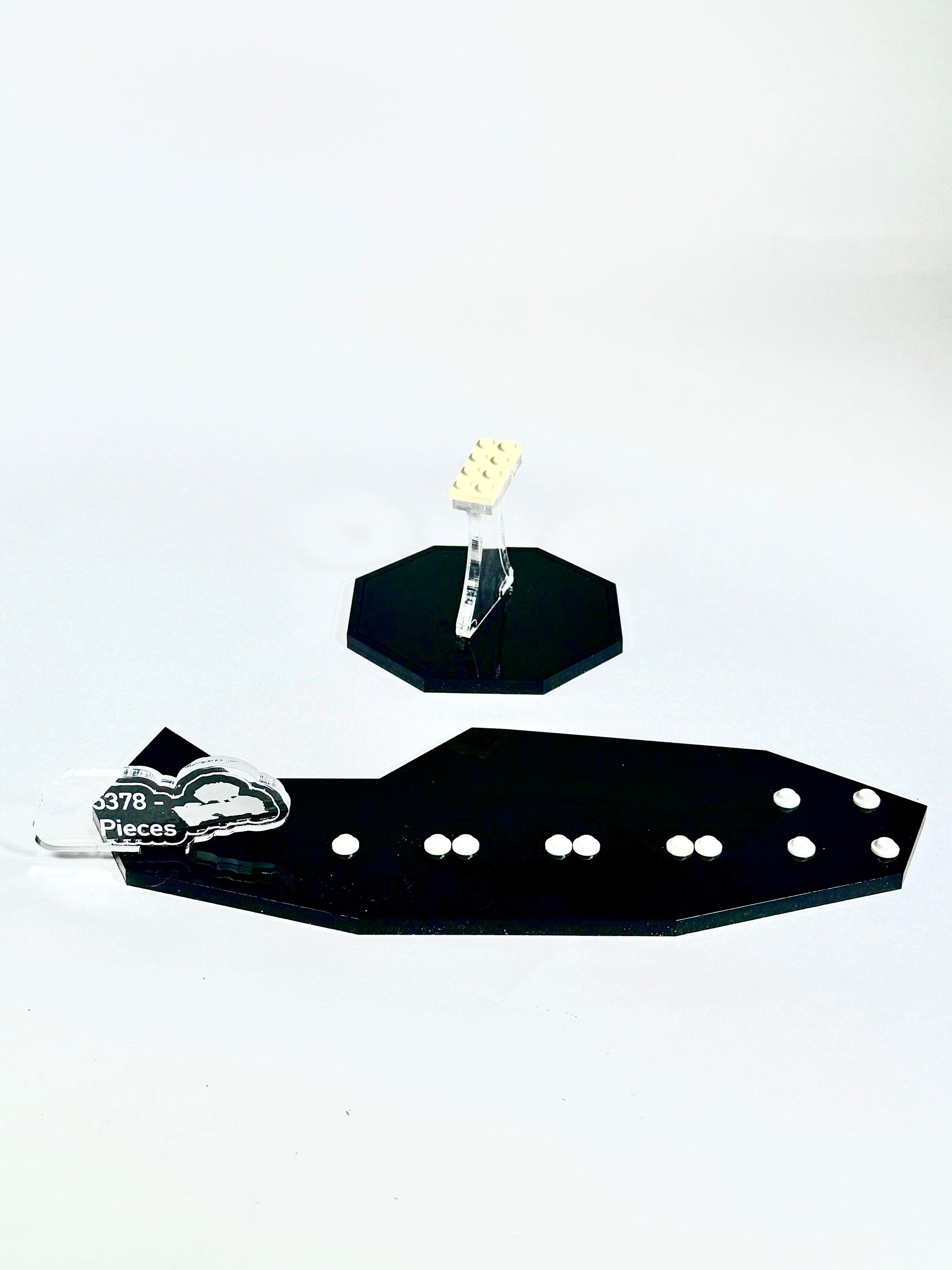 Each stand is made from durable .236 clear and black acrylic, laser-cut for crisp edges and crystal-clear presentation. Real LEGO® connection points are integrated to hold the model firmly in place while preserving the clean, minimalist look that highlights every detail of your build.