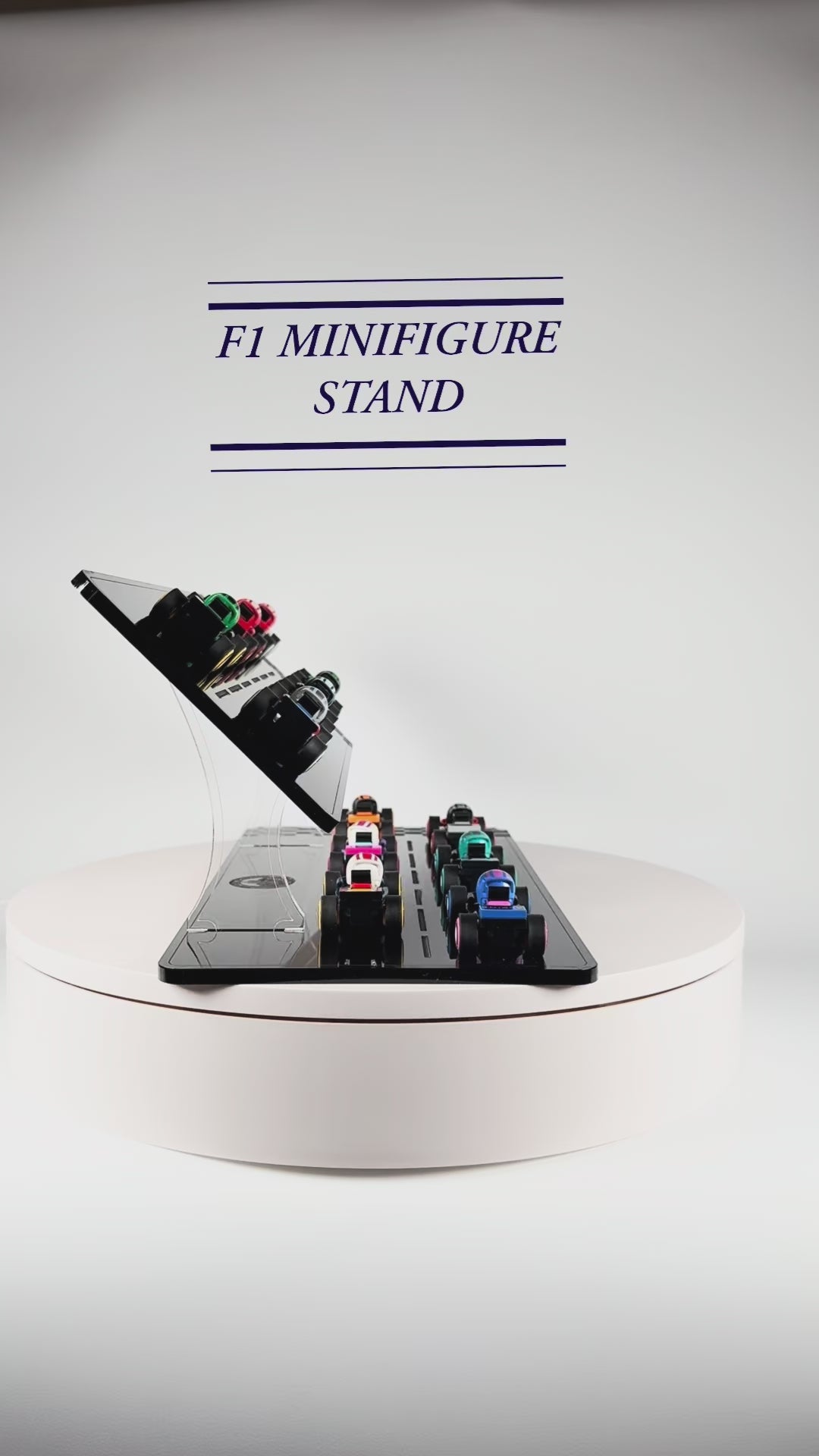 Take pole position in presentation with this sleek, custom-designed display stand built to showcase all 12 LEGO® F1® Collectible Race Cars in one dynamic, space-saving layout. Crafted from durable premium black acrylic, this stand delivers a clean, modern look that lets the vibrant colors and intricate details of your LEGO® Speed Champions shine. Whether you’re a motorsport enthusiast, a LEGO® collector, or just love precision displays, this stand is your podium. Assembly is quick and easy. We use .220 inch (5.58 mm) acrylic to ensure proper support and stability in both the base and the supports. LEGO® cars not included.