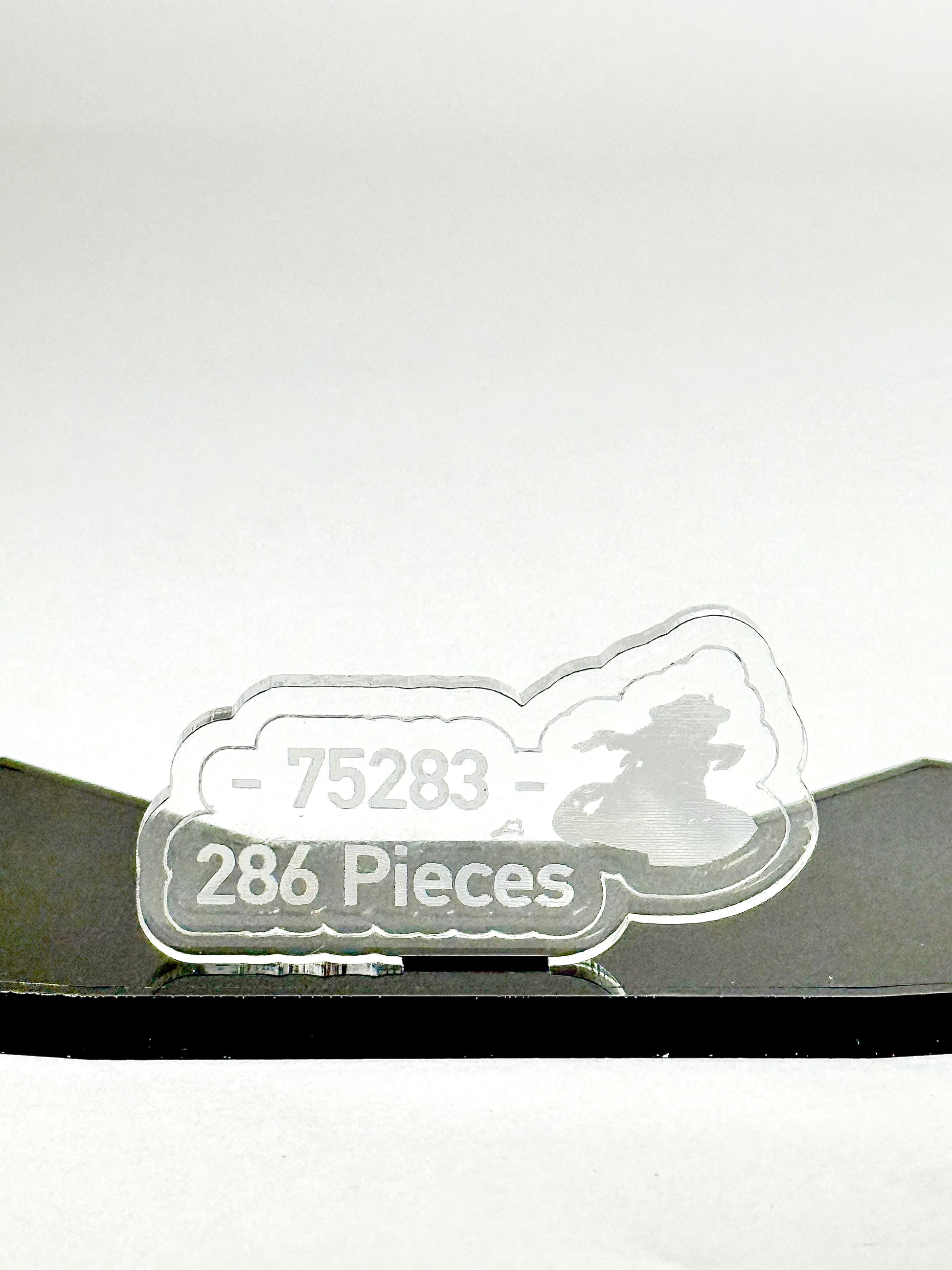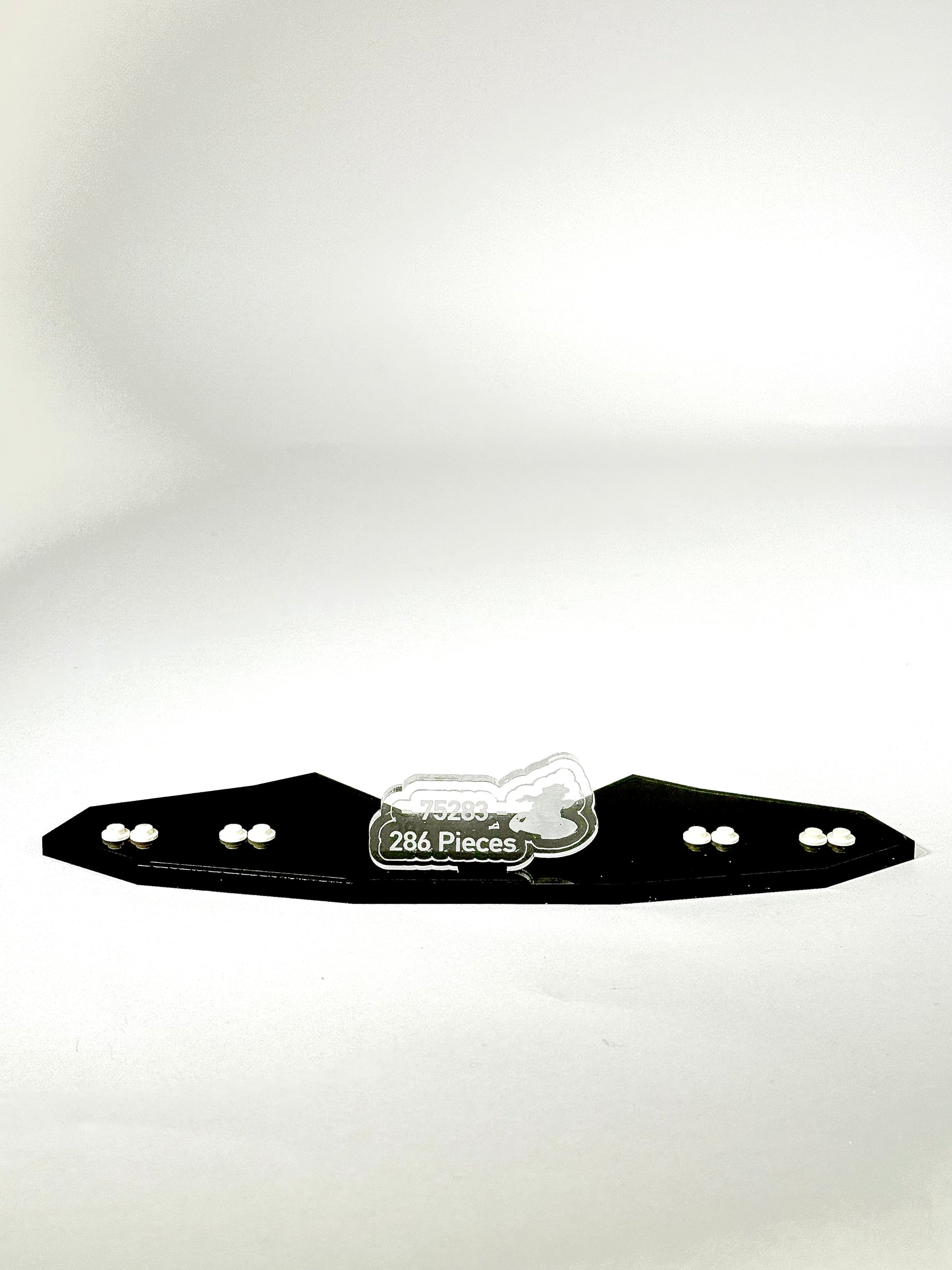 Crafted from sturdy .236" black cast acrylic, the base and supports are precision laser-cut for a seamless fit. The angled design elevates the AAT™, giving it the appearance of being in motion on the battlefield — as if it’s charging forward into action. A laser-engraved nameplate featuring the set number, name, and piece count adds a collector’s touch.